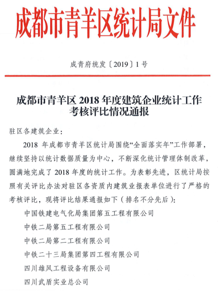 集團公司、華途公司、華霆公司統(tǒng)計工作獲青羊區(qū)統(tǒng)計局表彰