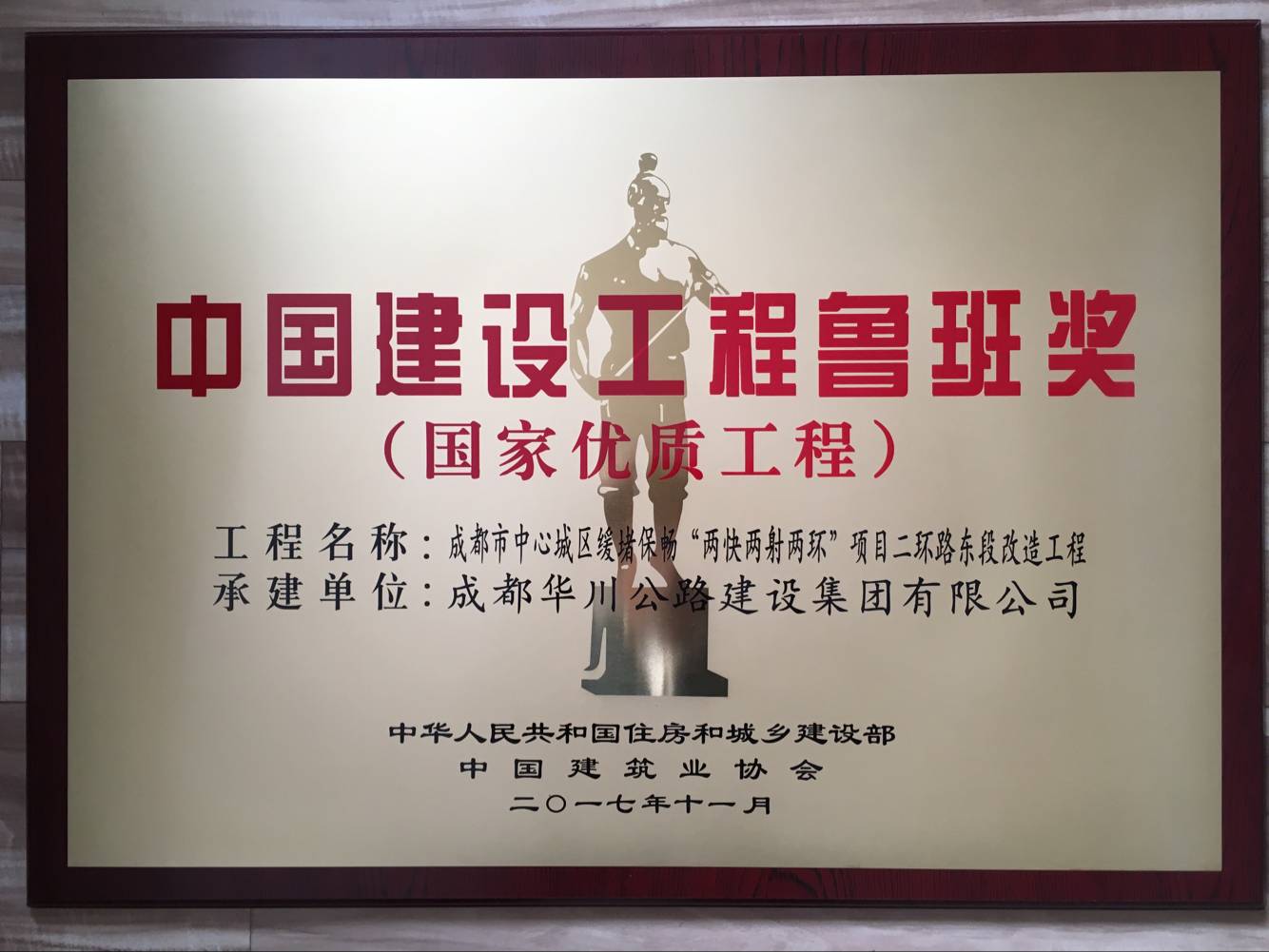 11月5日至7日,紀(jì)念魯班獎(jiǎng)創(chuàng)立30周年暨2016~2017年度創(chuàng)精品工程交流會(huì)在北京舉行,會(huì)上宣讀了《住房和城鄉(xiāng)建設(shè)部關(guān)于2016~2017年度中國(guó)建設(shè)工程魯班獎(jiǎng)(國(guó)家優(yōu)質(zhì)工程)獲獎(jiǎng)單位的通報(bào)》,集團(tuán)承建的“成都市中心城區(qū)緩堵保暢‘兩快兩射兩環(huán)’項(xiàng)目二環(huán)路東段改造工程”榮獲2016~2017年度中國(guó)建設(shè)工程魯班獎(jiǎng)。