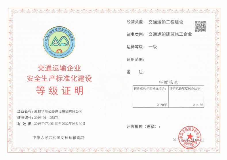 此次證書的獲得將對提升集團(tuán)公司在公路、橋梁等建筑施工領(lǐng)域的核心競爭力,為集團(tuán)公司實現(xiàn)安全管理標(biāo)準(zhǔn)化、作業(yè)現(xiàn)場標(biāo)準(zhǔn)化和操作過程標(biāo)準(zhǔn)化奠定了良好基礎(chǔ)。