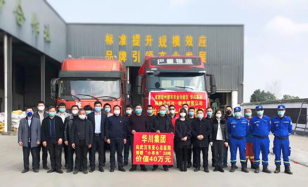 2月19日,滿(mǎn)載38噸的優(yōu)質(zhì)川米的卡車(chē)從四川省成都市崇州都市農(nóng)業(yè)產(chǎn)業(yè)功能區(qū)內(nèi)的華川長(zhǎng)江中上游中試熟基地發(fā)車(chē)啟程,向武漢進(jìn)發(fā)。這是成都華川公路建設(shè)集團(tuán)有限公司在前期參與防疫抗疫工作的基礎(chǔ)上,由華川集團(tuán)、旗下各分子公司、全體員工及相關(guān)合作社共同籌資捐贈(zèng)。