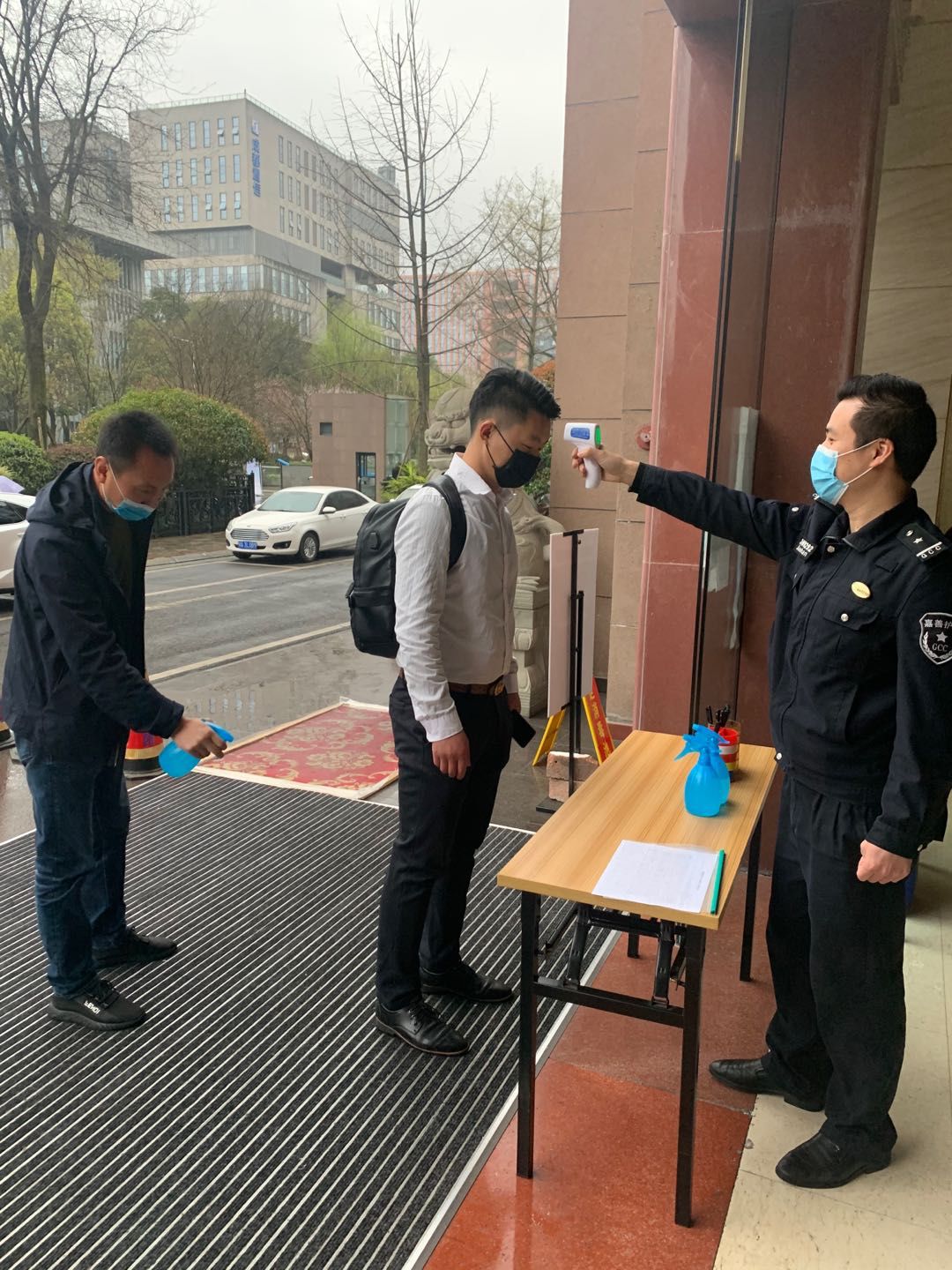每位進(jìn)入集團(tuán)辦公的員工須提前在人資中心處報備,進(jìn)入集團(tuán)辦公樓要于集團(tuán)辦公大樓入口處設(shè)置的體溫檢測點進(jìn)行登記、檢查、全身及鞋底消毒。體溫超過37.3℃禁止入內(nèi),行政后勤中心將對異常情況及時報告、處置,有疑似癥狀的員工將先隔離至臨時隔離房間。門衛(wèi)將加強(qiáng)辦公樓出入管理,員工在進(jìn)入集團(tuán)辦公大樓后不能隨意外出。