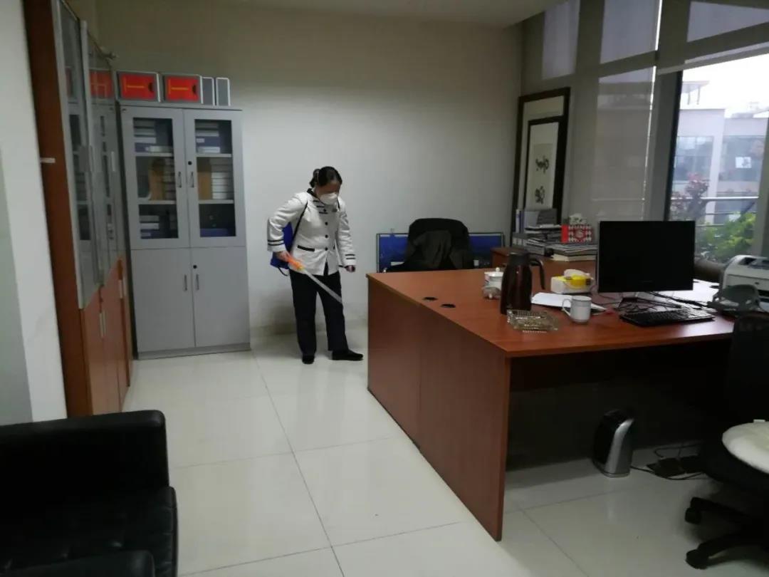 安排專人每日對集團(tuán)辦公大樓進(jìn)行徹底消毒,其中電梯轎廂(含內(nèi)外按鍵)每小時消毒一次;一樓大廳、衛(wèi)生間每小時消毒一次;其他區(qū)域每天消毒兩次;會議室使用完后立即消毒(原則上各單位、各部門均采用視頻會議,避免人員聚集);食堂每天消毒一次。為了確保消防安全,辦公區(qū)域內(nèi)嚴(yán)禁以噴灑酒精的方式進(jìn)行消毒,均采用抹布蘸取酒精擦拭。