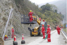 集團參演科目為S105線南壩路段受到地震引發(fā)的次生災(zāi)害影響,導致山體滑坡、塌方,需要緊急搶通。演練中,根據(jù)指揮部命令,集團迅速組織應(yīng)急救援隊伍到達受災(zāi)路段,快速清理塌方、落石,并與武警救援力量密切合作,共同完成了靠山體一側(cè)的高空作業(yè),成功搭建起20米長的防護網(wǎng),在最短時間內(nèi)打通了青川至平武方向生命通道,為后續(xù)災(zāi)區(qū)救援爭取了寶貴時間,圓滿完成了演練任務(wù)。