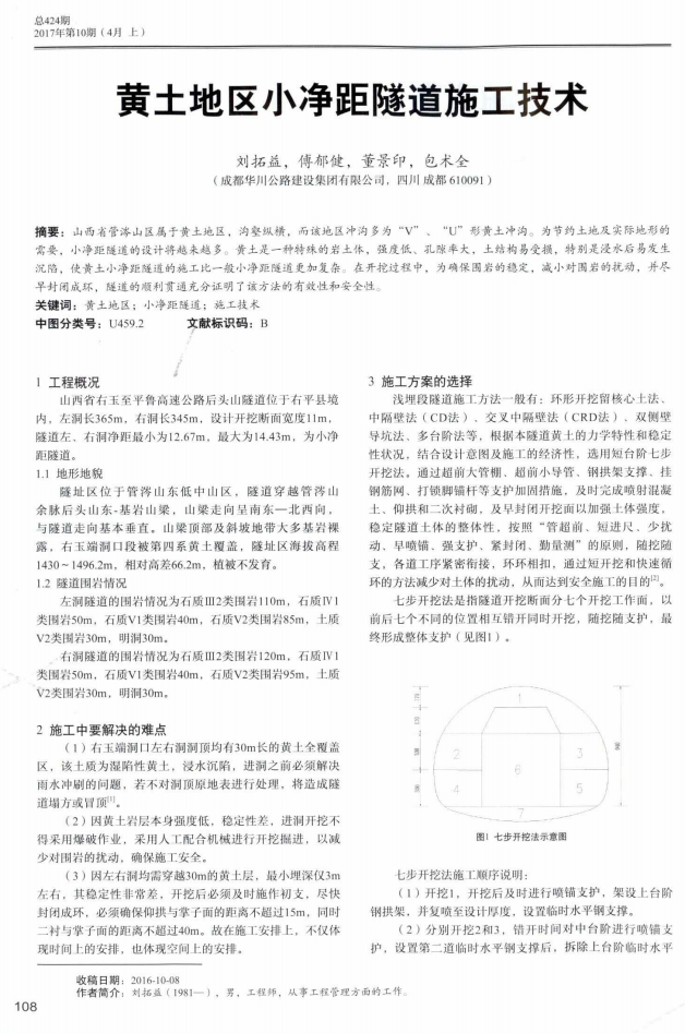 5月12日下午,山西右平項(xiàng)目部收到來自中央級期刊《交通世界》(旬刊)編輯部寄來的學(xué)術(shù)論文刊登賀信,祝賀由成都華川公路建設(shè)集團(tuán)有限公司山西項(xiàng)目部項(xiàng)目總工程師劉拓益,項(xiàng)目副經(jīng)理董景印、包術(shù)全,項(xiàng)目副總工傅郁建合作的學(xué)術(shù)論文《黃土地區(qū)小凈距隧道施工技術(shù)》被采用發(fā)表,該項(xiàng)學(xué)術(shù)論文的發(fā)表為集團(tuán)公司在科技成果方面再次添磚加瓦,同時(shí)表明了山西項(xiàng)目在科技成果的創(chuàng)新工作上再上了一個(gè)新的臺(tái)階。