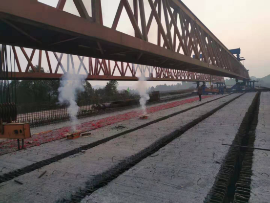 自8月10日首片T梁開(kāi)始架設(shè)以來(lái),全體施工人員克服高溫、多雨等困難,放棄節(jié)假日與家人團(tuán)聚的機(jī)會(huì),堅(jiān)守在施工一線,確保了張家溝大橋順利貫通,為后續(xù)路面單位的施工和材料運(yùn)輸提供了便利。
