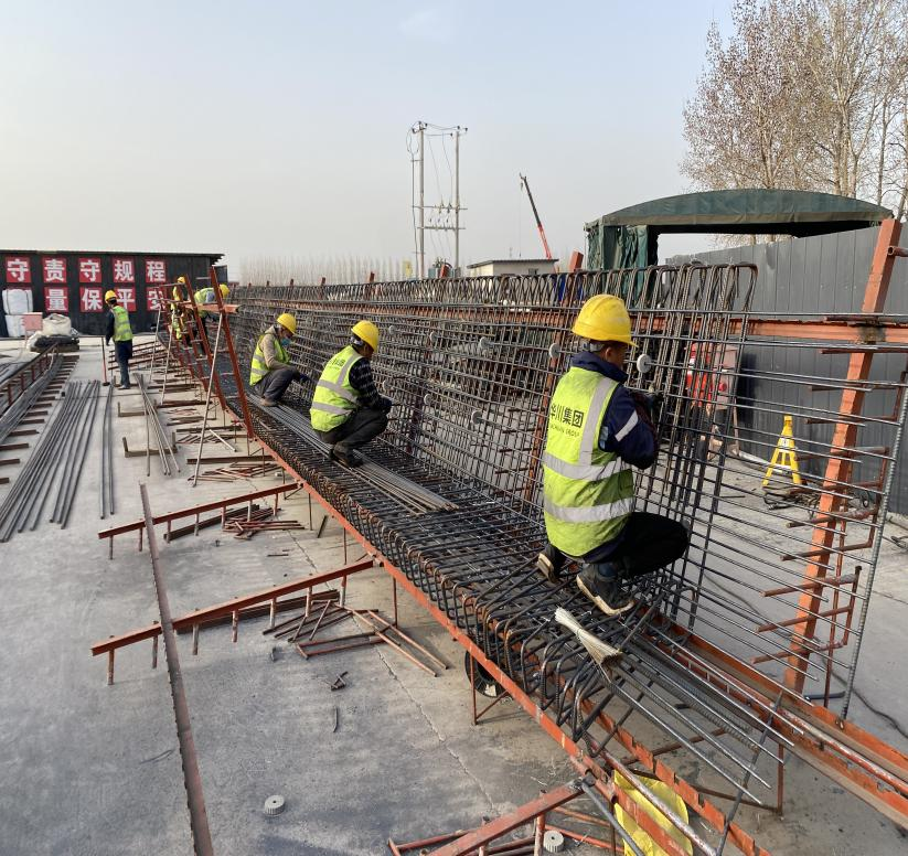 自2022年8月份開工以來,項(xiàng)目部本著“開局就是決戰(zhàn),起步就是沖刺”的理念,優(yōu)化施工組織,科學(xué)部署,轉(zhuǎn)變管理思路,改進(jìn)管理方式,以賽促進(jìn)、以賽促干,激發(fā)活力。根據(jù)梁板預(yù)制工藝流程,組成了鋼筋下料加工、鋼筋綁扎、模板安裝、混凝土澆筑、養(yǎng)護(hù)張拉五個(gè)施工班組。各班組相互獨(dú)立,每道工序環(huán)環(huán)相扣,嚴(yán)格執(zhí)行“先自檢,后報(bào)檢”程序,這種班組化管理模式,大幅度提高了施工效率;同時(shí)嚴(yán)格執(zhí)行首件工程認(rèn)可制,貫徹“以工序保分項(xiàng)、以分項(xiàng)保分部、以分部保單位、以單位??傮w”的質(zhì)量創(chuàng)優(yōu)保障原則,以首件工程樣板示范,引領(lǐng)后續(xù)標(biāo)準(zhǔn)化施工,提高梁板預(yù)制水平和技術(shù)質(zhì)量管理水平。