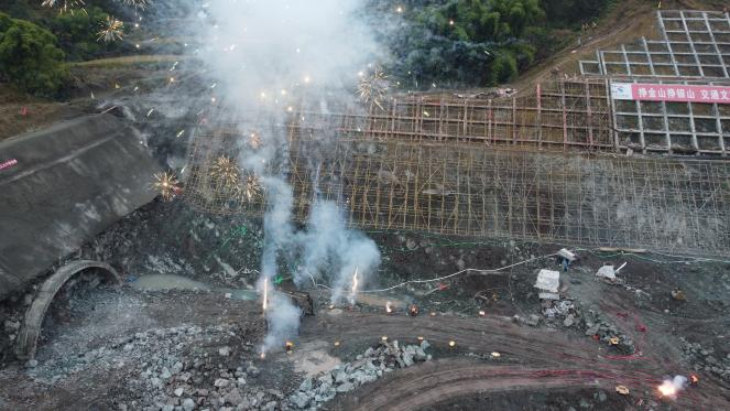 12月2日上午8時(shí),禮花與鞭炮齊鳴,拉開(kāi)了鐵山隧道出口左洞進(jìn)洞儀式的帷幕。8點(diǎn)08分,隨著一聲炮響,繞西高速項(xiàng)目西外支線鐵山隧道出口端順利進(jìn)洞。